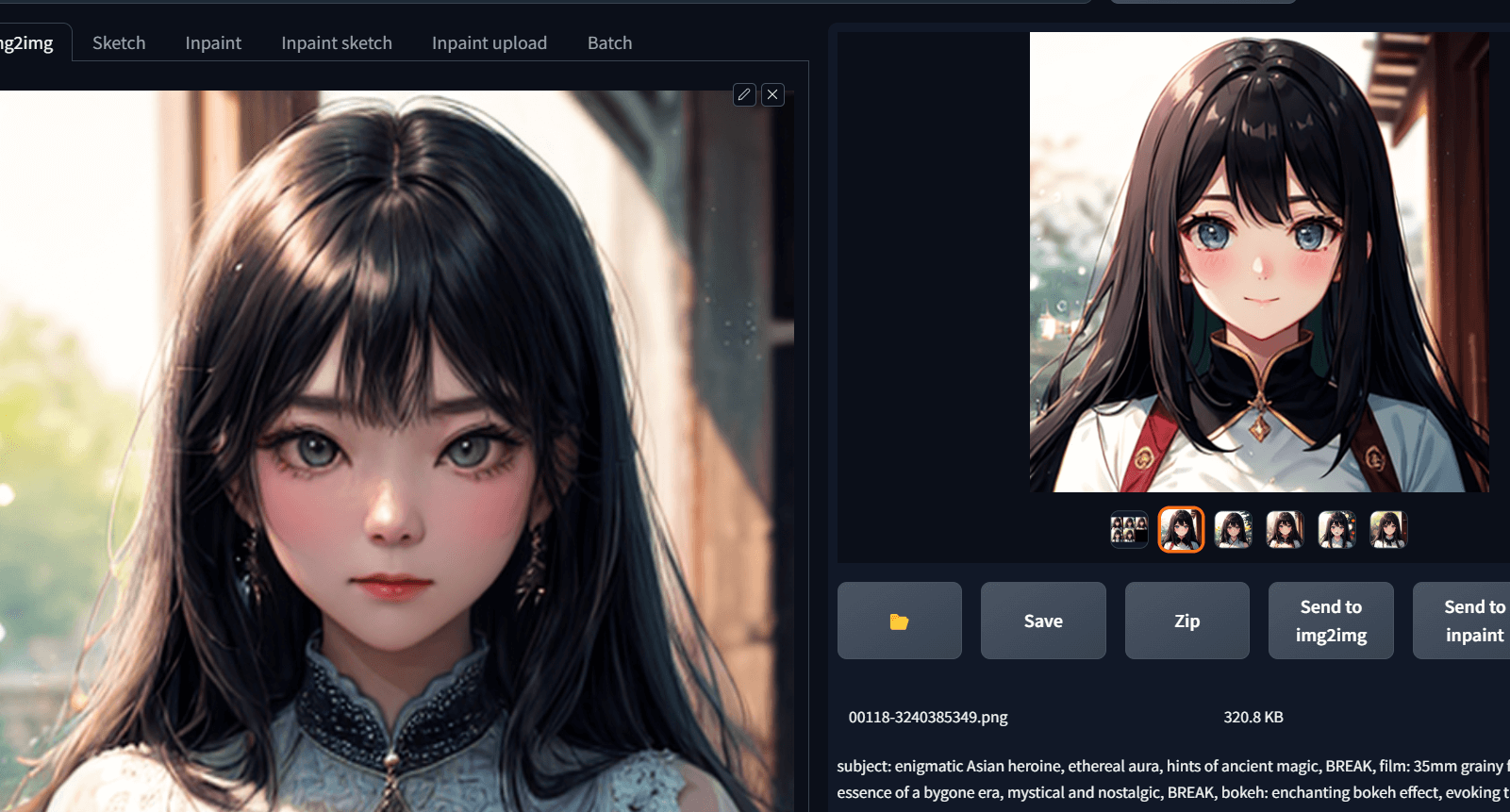 본론으로 돌아와 AI드로잉으로 이미지 투 이미지로 원본의 이미지를 살리면서 다양한 베리에이션을 해보고 싶을때 원본 이미지를 사용했을때의 프롬프트를 그대로 써줘야 AI그림 그리기에서 내가 원하는 원본이미지를 기준으로하여 비슷한 분위기의 그림이 나온다고 하네요. 그래서 이번에는 이미지투 이미지 하기 전 원본 이미지를 생성했을때 적었던 프롬프트를 그대로 복붙하여 이미지를 제작해 봤습니다.