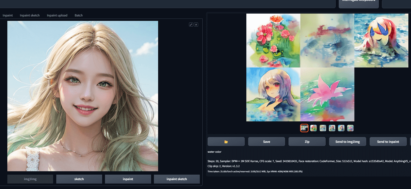 프롬프트에 워터칼라만 입력하고 제너레이트 해봤습니다.