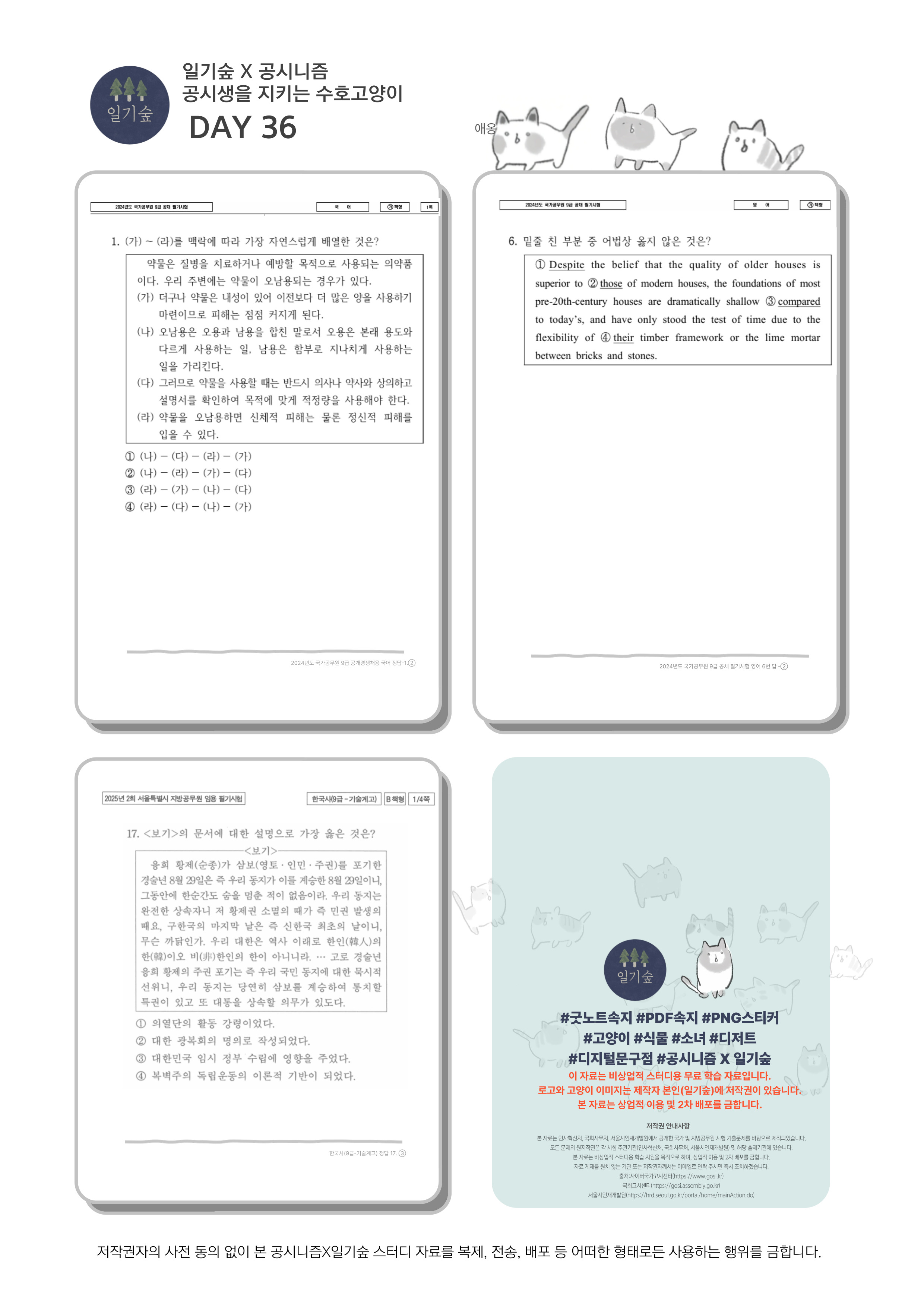 Day 36 공무원 시험 10분더 공부 50일 9급 국,영,한국사 기출 요약 및 문제 공유