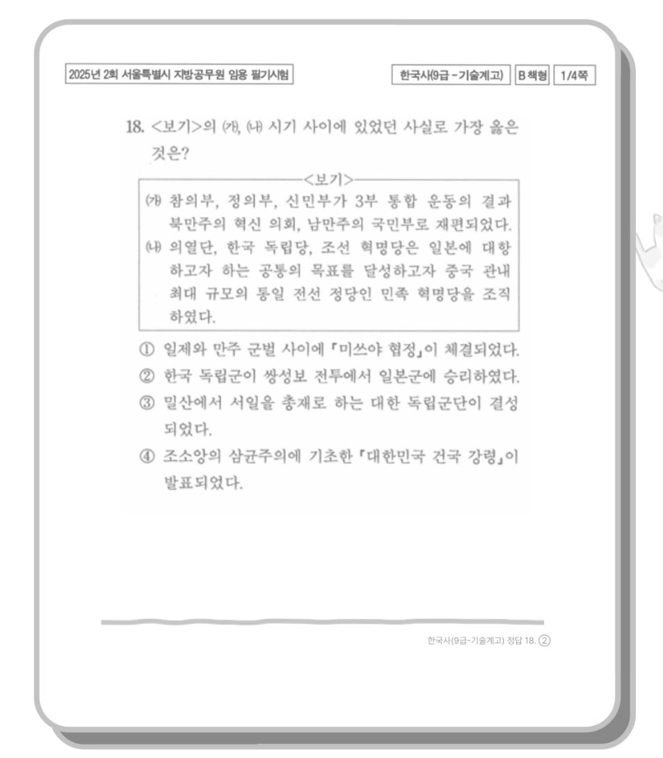 오늘의 시험지는 인사혁신처와 국회사무처 등의 공신력 있는 기관의 기출문제를 바탕으로 구성되었습니다.